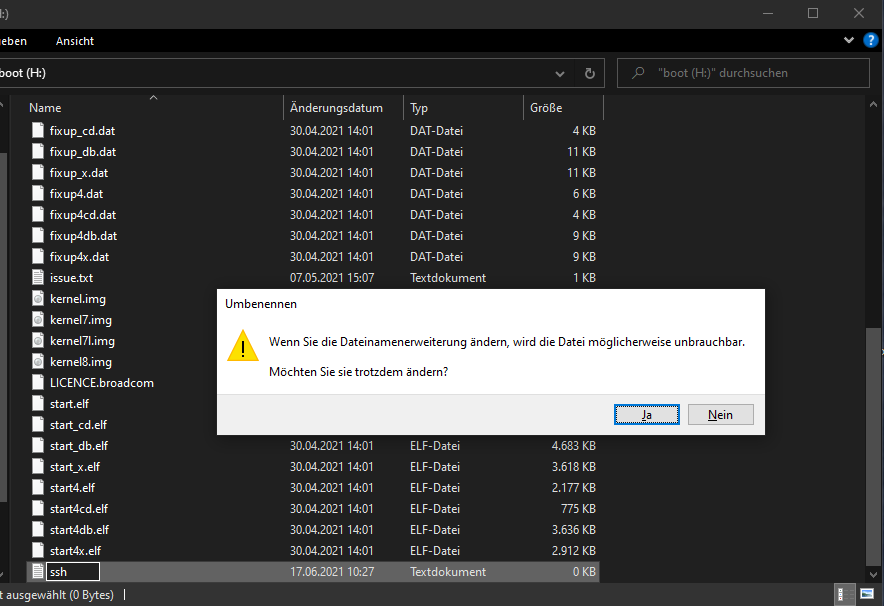 Sobald der Vorgang abgeschlossen ist, öffnet sich das Hauptverzeichnis der SD-Karte. Hier erzeugen Sie eine leere Datei mit dem Namen "ssh". Machen Sie dazu einen Rechtsklick und wählen Sie "Neu>Textdokument".